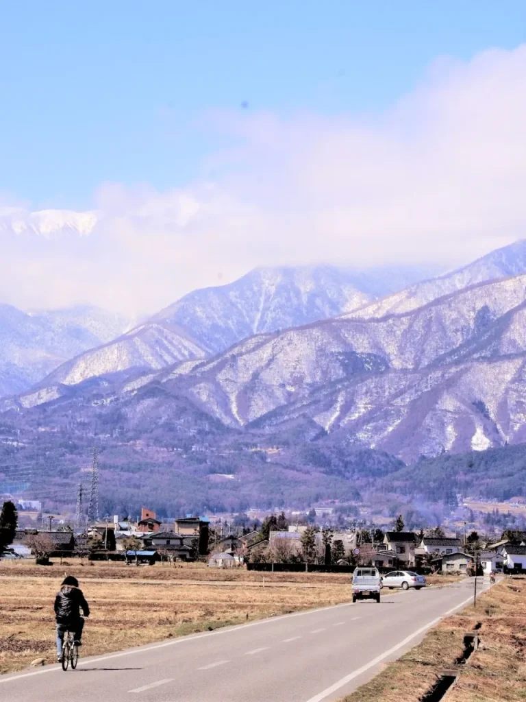 安曇野ではのどかな田園風景や、それを囲む雄大な北アルプスの風景を堪能しながらサイクリングが楽しめます。JR穂高駅前に2軒のレンタサイクルショップがあるため、ぜひ利用してみてください。