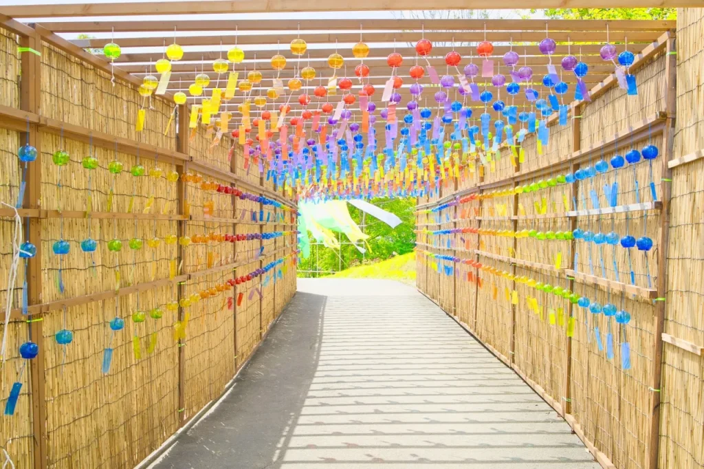 とくに人気なフォトジェニックスポットは「高島ちぢみの織りなす虹のカーテン」と「虹色の癒しの風鈴のよし小道」です。どちらも虹色がテーマのため、鮮やかで幻想的な空間が広がります。ぜひ大切な人と記念写真を撮ってくださいね。