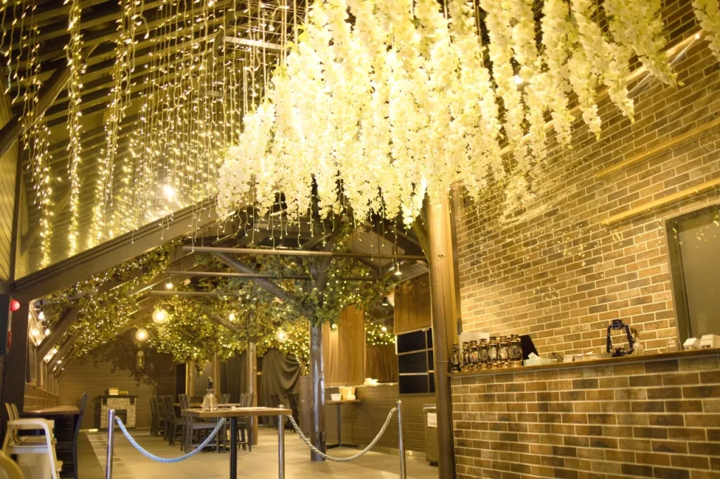 ゴンドラから降り、左手に進むと山小屋が目に入ります。山小屋に入ると、まるで幻想的な空間に迷い込んだかのような装飾が広がっていました。