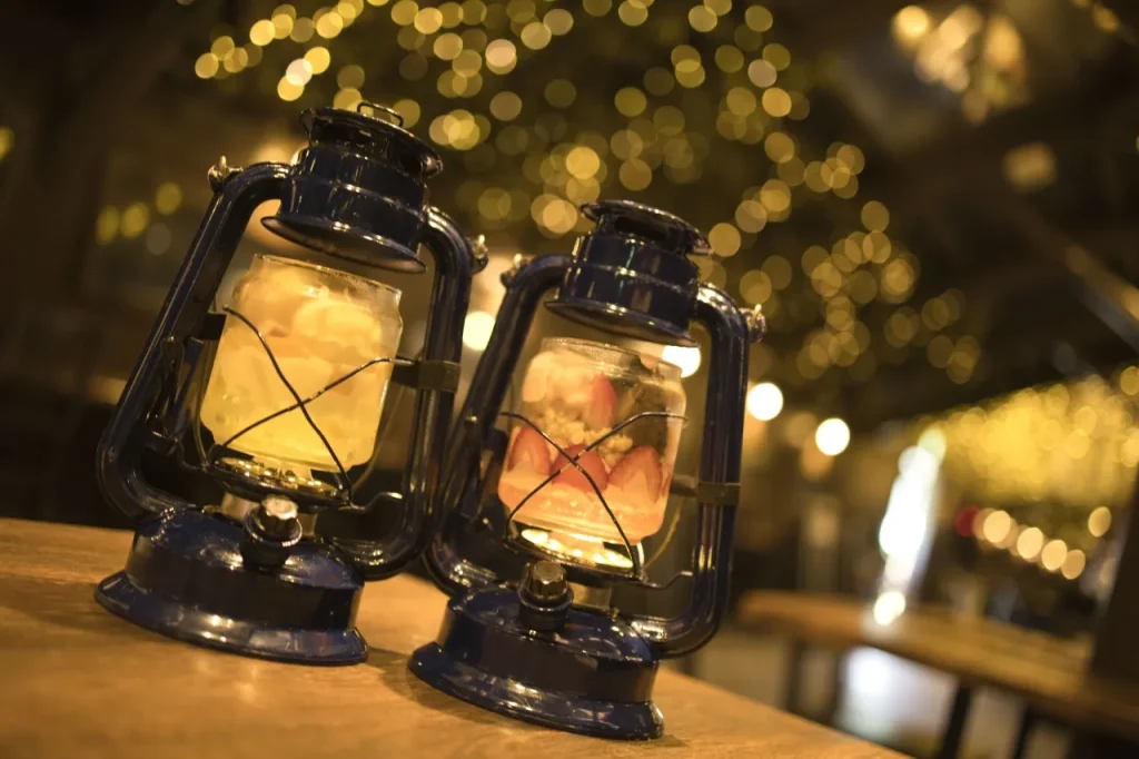 この山小屋は、夜の森がコンセプトのパフェ専門店「LAMP」というお店。ランプが優しく灯る非日常的な空間には、心を奪われるでしょう。