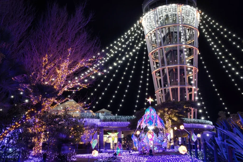 江ノ島では、毎年11月下旬〜2月中旬にかけて、島の頂上にある「江ノ島シーキャンドル」を中心にイルミネーションが開催されます。