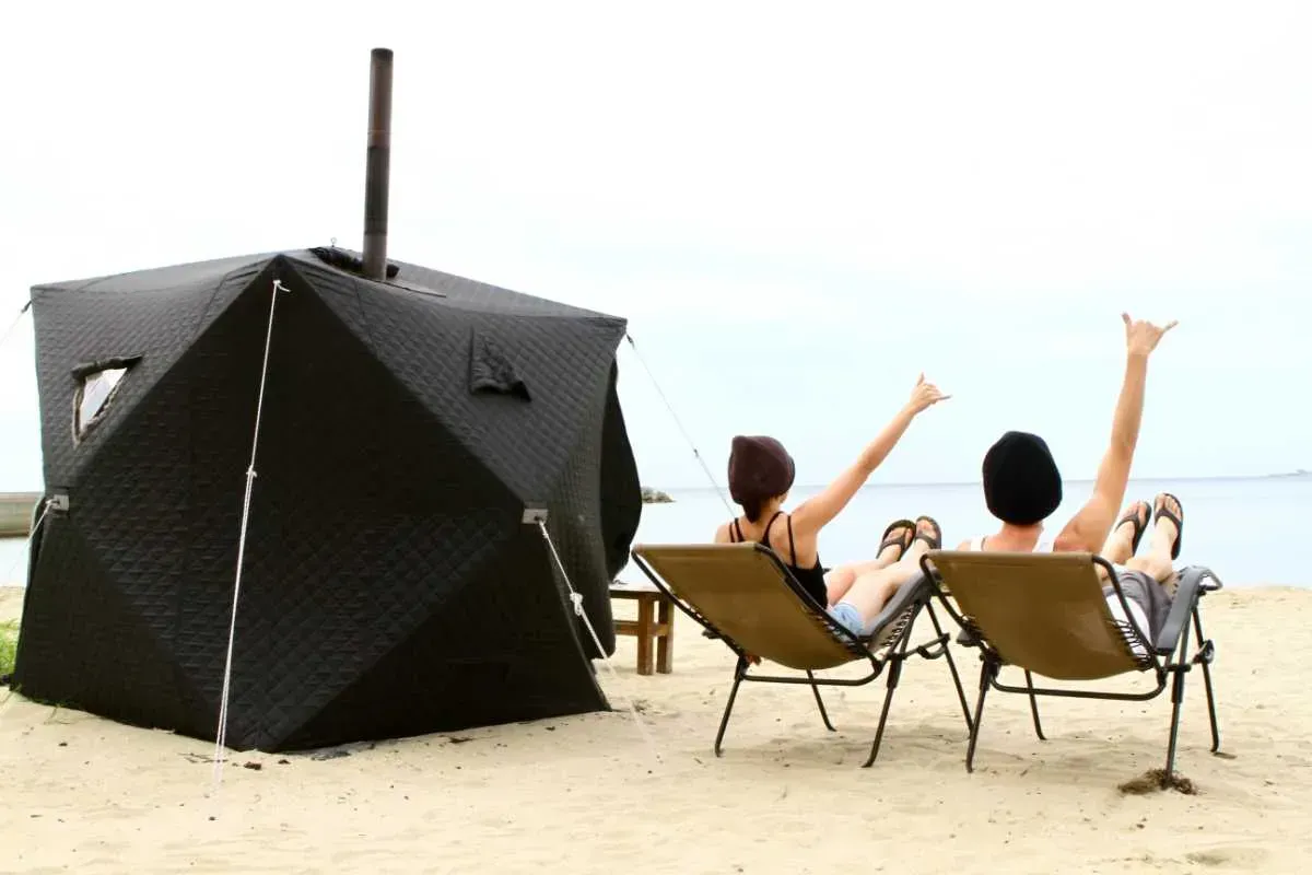 あとはサウナですね。テントサウナをキャビン4棟とビーチに設置しており、一部のサウナーから「サウナ後の外気浴は世界最高峰」とご評価いただいてます。海風にあたりながらの「ととのい」は、サウナーカップルにぜひ体験いただきたいです。