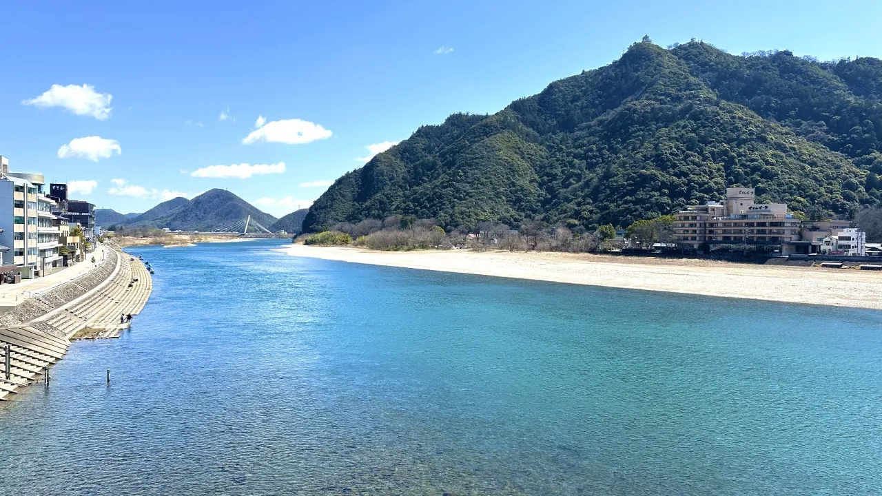 2人で腰掛けると、見えるのは少し低い位置から見上げる金華山と岐阜城。目の前には大きな長良川、かすかに聴こえるせせらぎが、大切な人との時間を緩めてくれます。