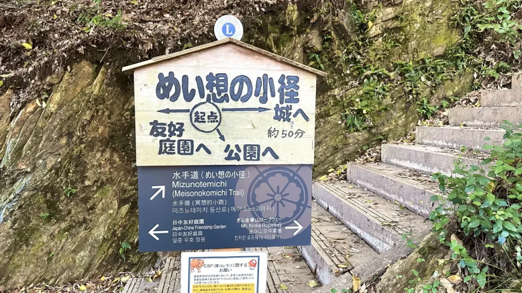 金華山の登山が初めての2人には2.3kmのコース、「めい想の小径(水手道)」がおすすめ。岐阜公園内に登山道の入り口があるため、分かりやすいのもうれしいポイントです。