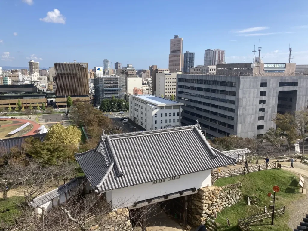 現在では周辺が市街地化され、天守閣からは隣接する浜松市役所やランドマークとなっているハーモニカ型の「ホテルオークラ」も見られます。