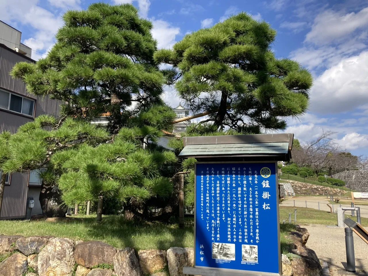 天守閣の南側にあるこの広場には、「鎧掛松」や「家康お手植えのみかんの木」といった歴史的な見どころがあります。