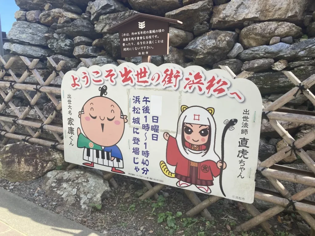 また天守閣から南側に下る途中には、現代風の家康ゆかりスポットとして「家康くん」と「直虎ちゃん」のパネルも飾られています。