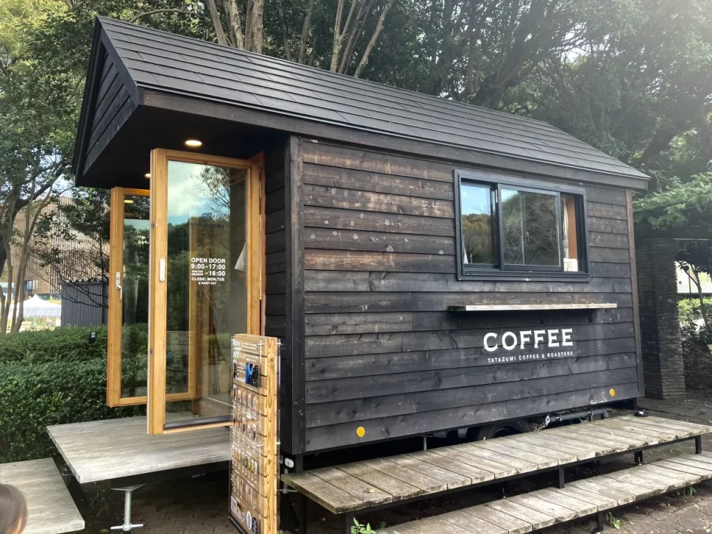 なかでもテイクアウト専門のタタズミCOFFEEは、芝生広場の近くにあり、周囲にはベンチもたくさん設置されています。木々に囲まれた心地よい空間の中で、ゆったりとコーヒーを味わうことができます。