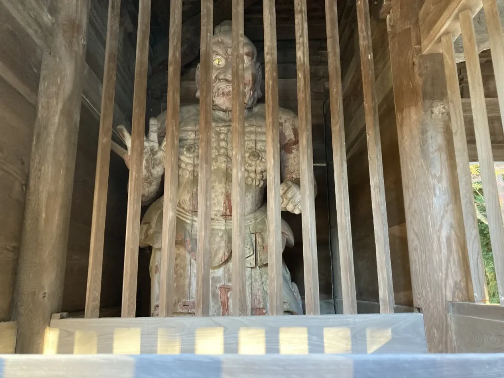 最初に二人を迎えてくれるのは、堂々とした「仁王門」です。門の中には迫力満点の一対の仁王像が鎮座しており、その力強い表情に圧倒されることでしょう。