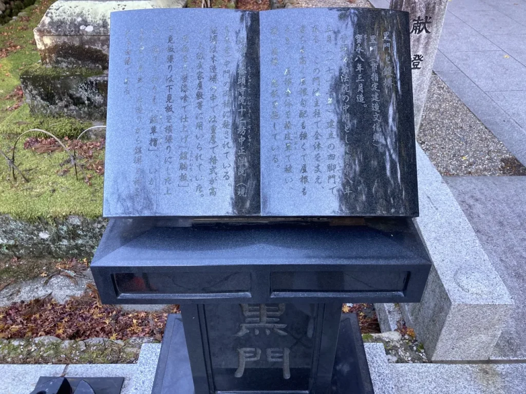 仁王門から少し歩くと、左手側に見えてくるのが、同じく重要文化財に指定されている「黒門」です。
