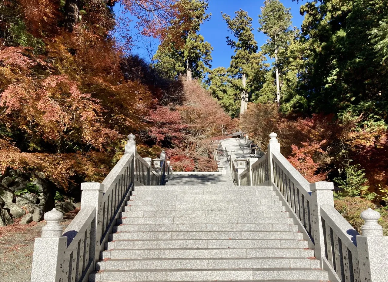 二人で紅葉を楽しみながら、約280段の石段をゆっくりと登っていきましょう。もし疲れたら途中の休憩スペースで一息つき、目の前に広がる紅葉の美しさを心ゆくまで堪能するのもおすすめです。