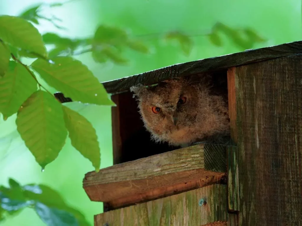 夜はフクロウの巣のライトアップを行っています。雛に餌を運ぶ親鳥の姿は迫力満点ですよ。