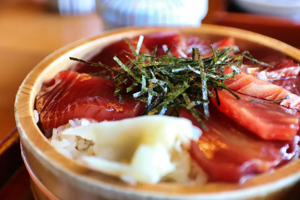 漁師が仕事の合間に手で豪快に酢飯と刺身を混ぜたことが由来だそうで、その新鮮で豪快な味に舌鼓を打つほどの美味しさでした。