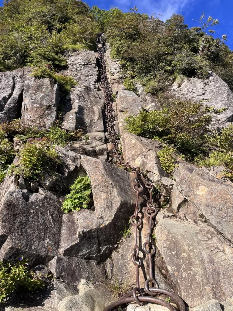 また登山道には古くから修行に使われてきた4つの鎖場があり、一般登山者も挑戦可能です。登りきるには技術と体力が必要なため、登山初心者にはおすすめできませんが、他の山では味わえないスリリングな体験ができますよ。