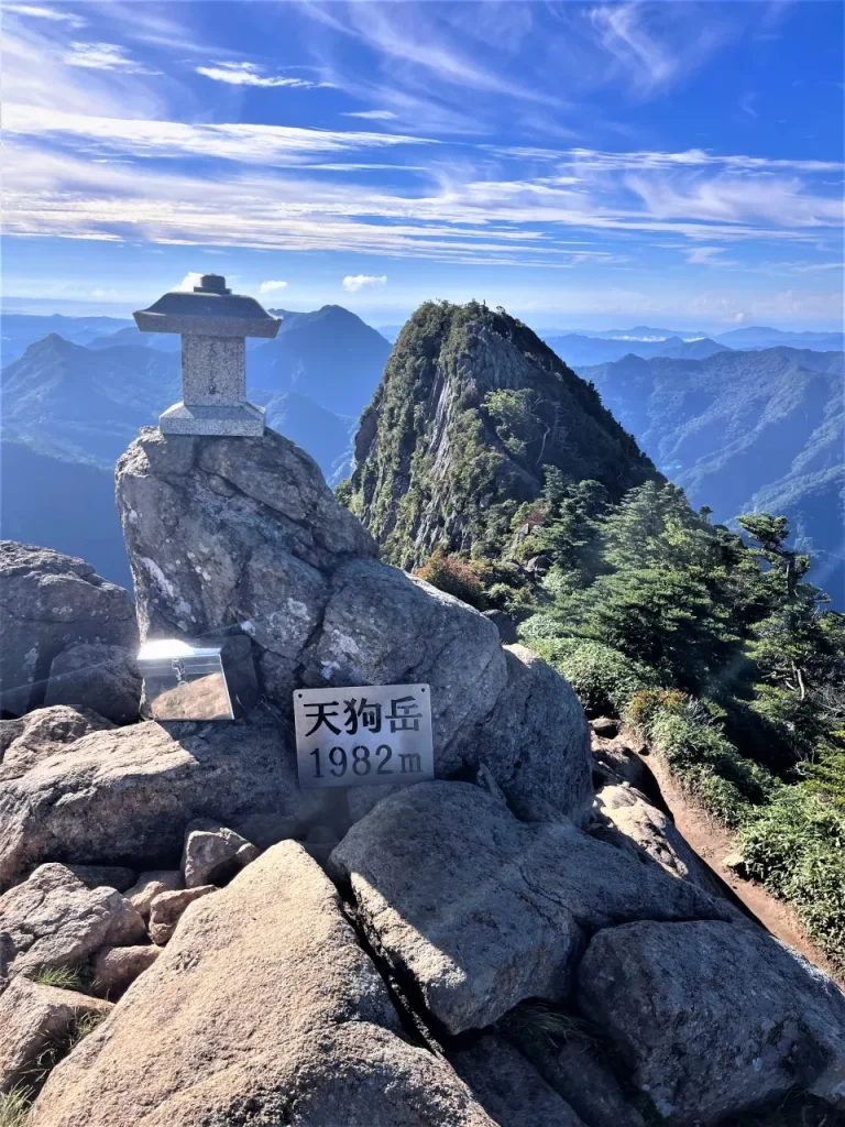もうひとつのおすすめポイントは天狗岳。頂上社のある弥山の先に望む、鋭く尖った形状が印象的な峰で、標高1,982mを誇る石槌山の最高峰でもあります。