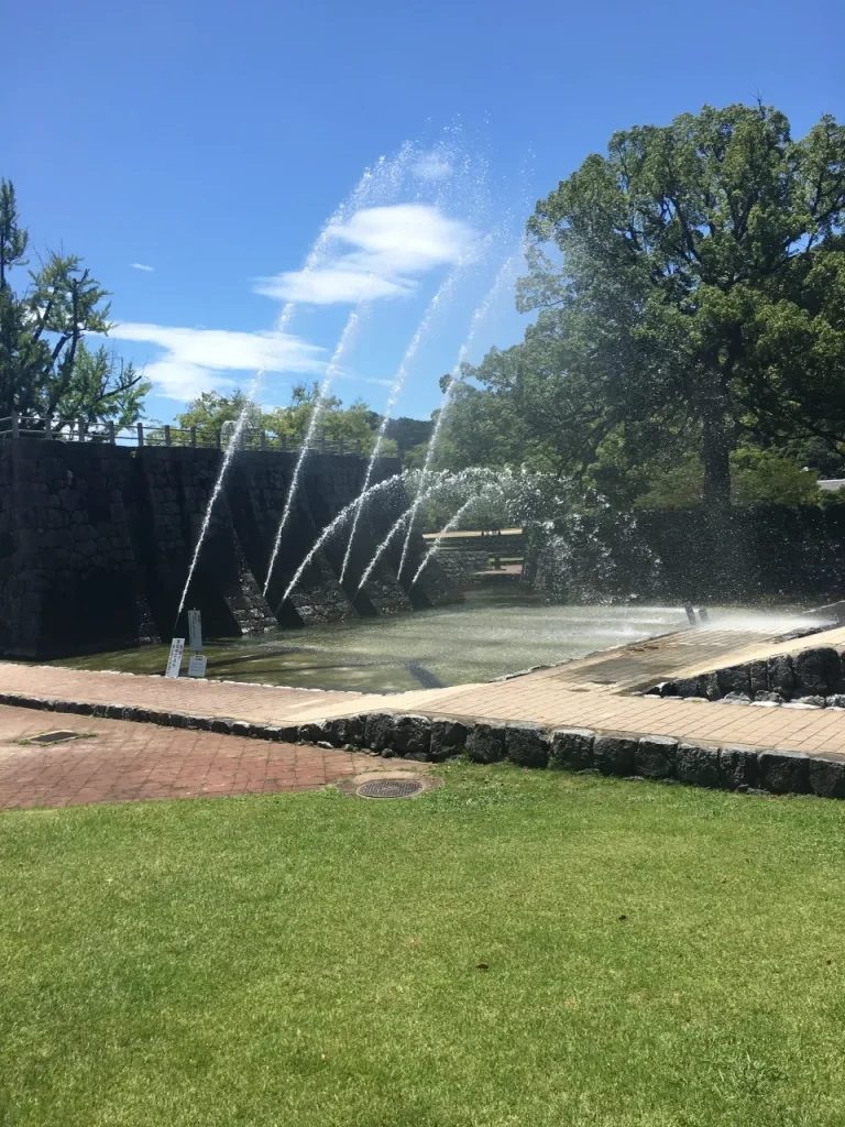 吉香公園に行ったらぜひ見ておきたいのが、公園中央にある大噴水。大きなアーチ型を描くこの噴水は公園の名物です。天気が良い日はここで虹が見られるかもしれません。