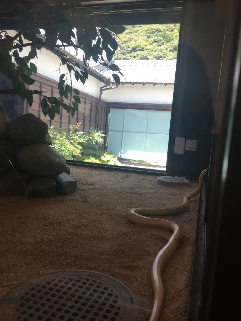 岩国城を満喫したあとは、再び「岩国ロープウエー」に乗ってふもとに戻り、吉香公園内にある「岩国シロヘビの館」にも寄ってみましょう。