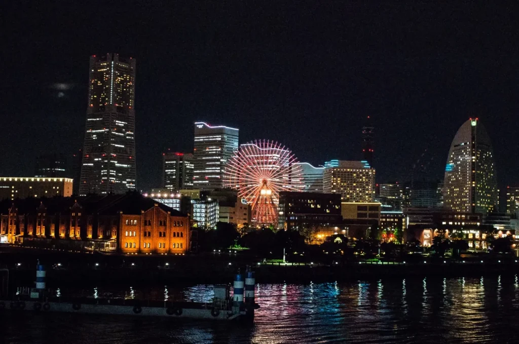 週末の便なら途中で横浜にも寄港します。赤レンガ倉庫や大観覧車を海から眺められるため、こちらも必見ですよ。