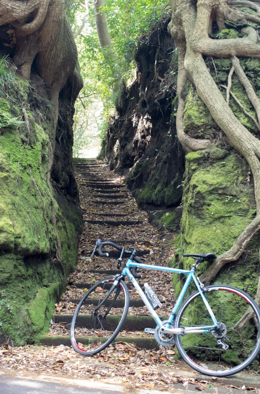 旧道では、道の両側にそびえる椿の木が作り上げた自然のトンネルの中を自転車で走れます。道の途中にはパワースポットとして知られる「泉津の切通し」もありますのでこちらも必見ですよ。