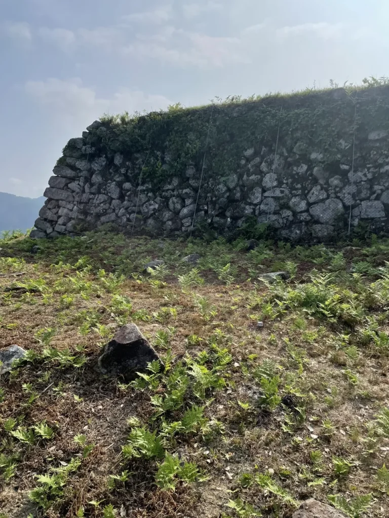 有子山城の登山道では階段状の曲輪や戦国時代に築かれた石垣など、当時の遺構を目の当たりにできます。