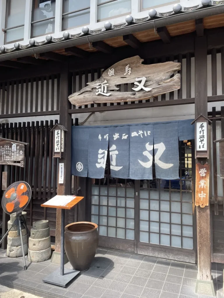 出石の町には約40軒のお蕎麦屋さんがありますが、今回はその中でも「近又(きんまた)」を紹介します。