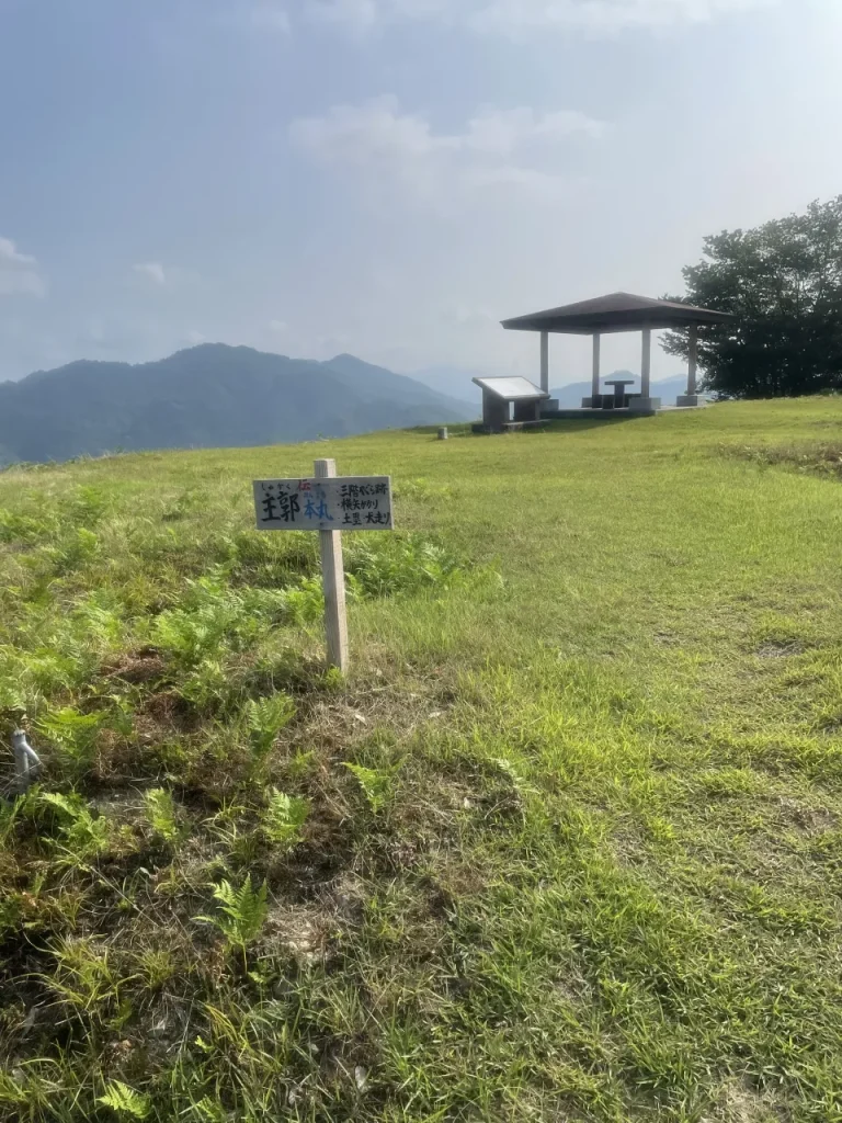 出石城の脇道から有子山城の登山道に入れます。登山道の入り口から山頂の主郭までは歩いて約1時間。