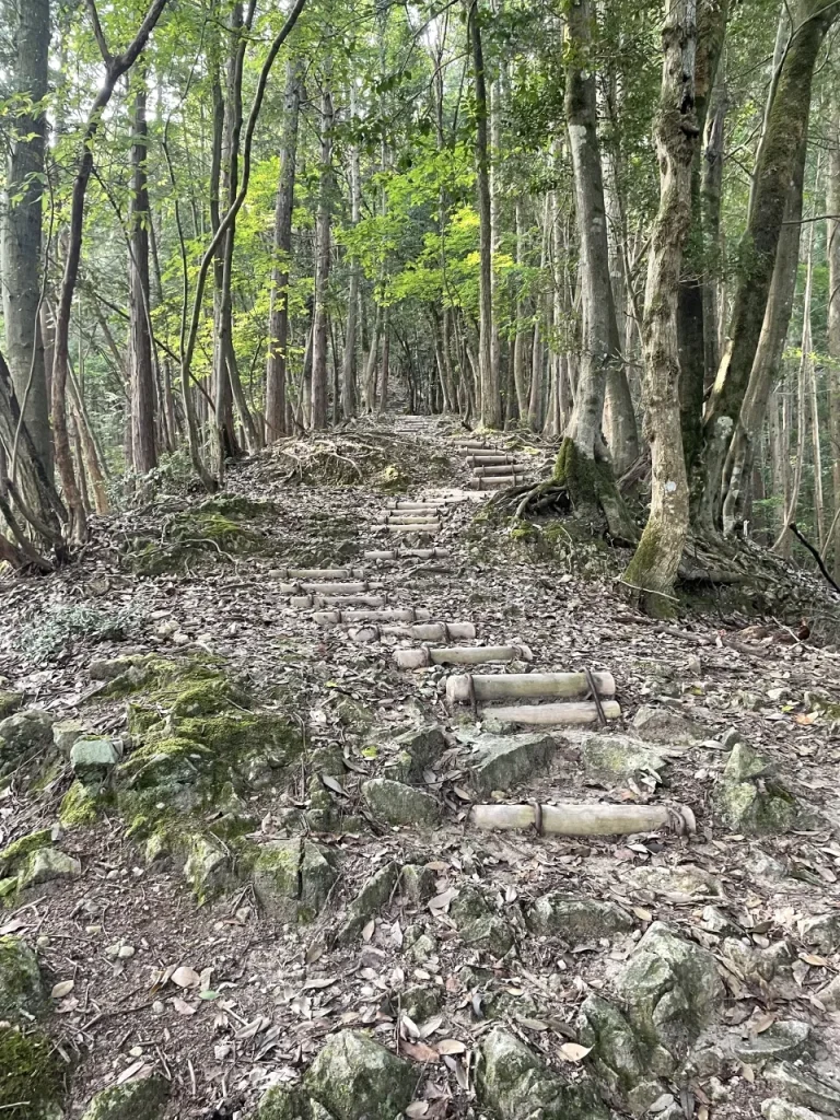 登山道に入ると待っているのは、どこまでも続く長い階段。