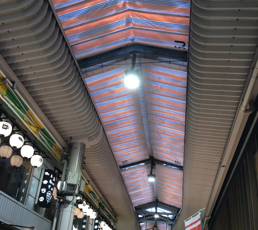 約170の店が連なる市場はアーケードに覆われており、万が一の天候不良でも傘いらず。ハンズフリーで店先グルメに集中できます。