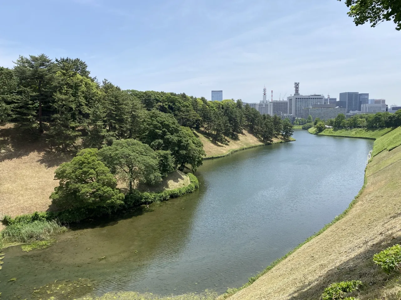 半蔵門を過ぎると、左手には美しい皇居のお濠が望めます。足を止め、お濠をバックにツーショット写真を撮ってもいいですね。