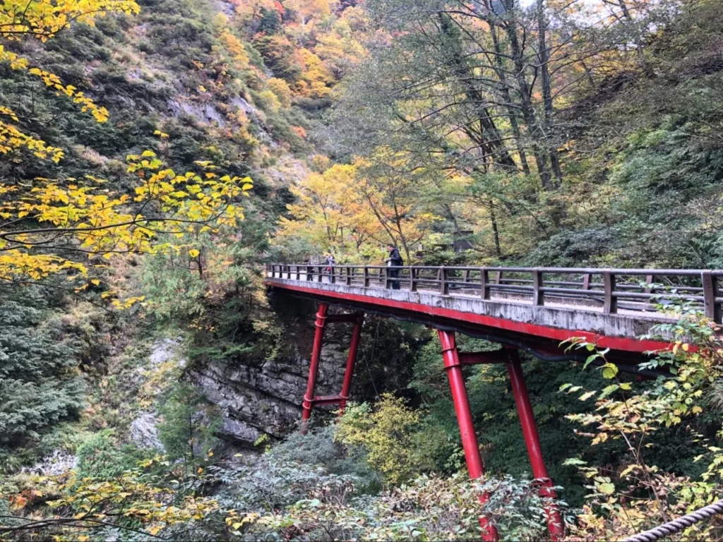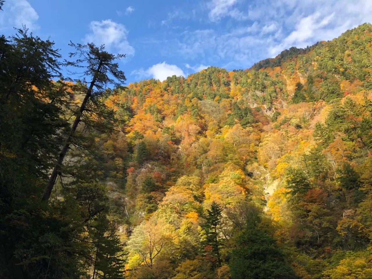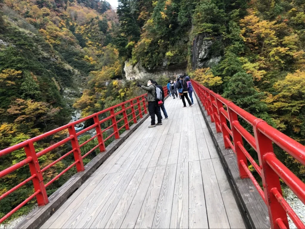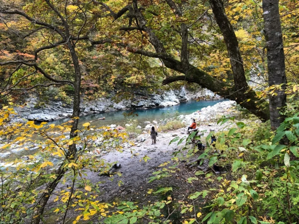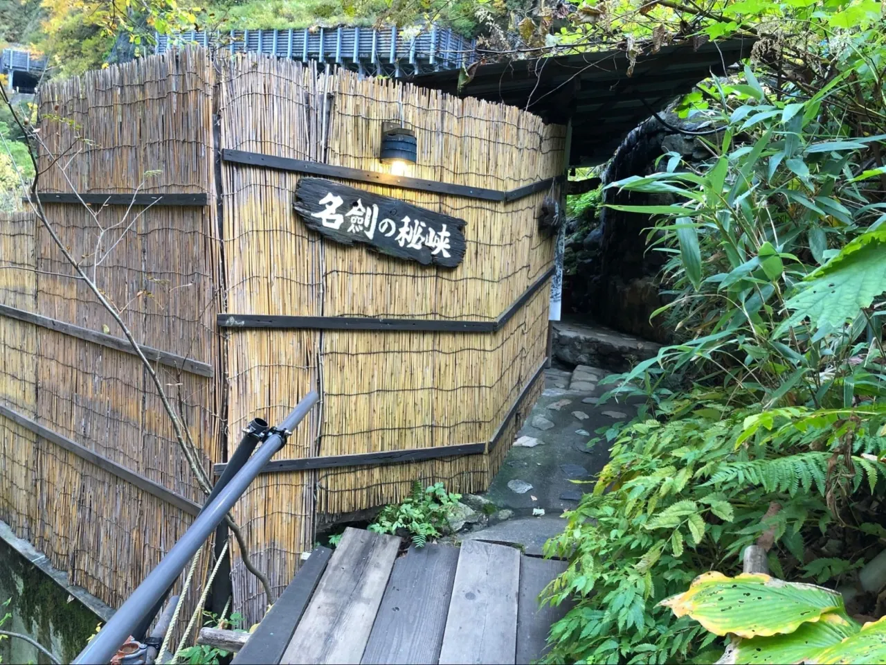 奥鐘橋から15分ほど歩いた場所には、名剣温泉と呼ばれる温泉があります。山と紅葉に囲まれた自然豊かな空間で楽しめる露天風呂は格別で、ハイキングでたまった疲労も忘れてしまうことでしょう。