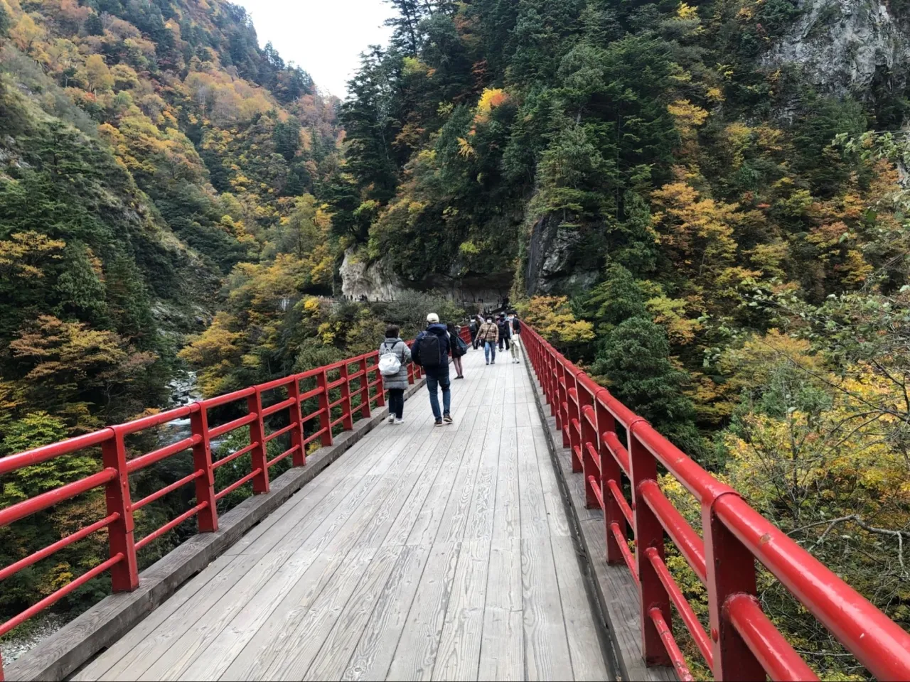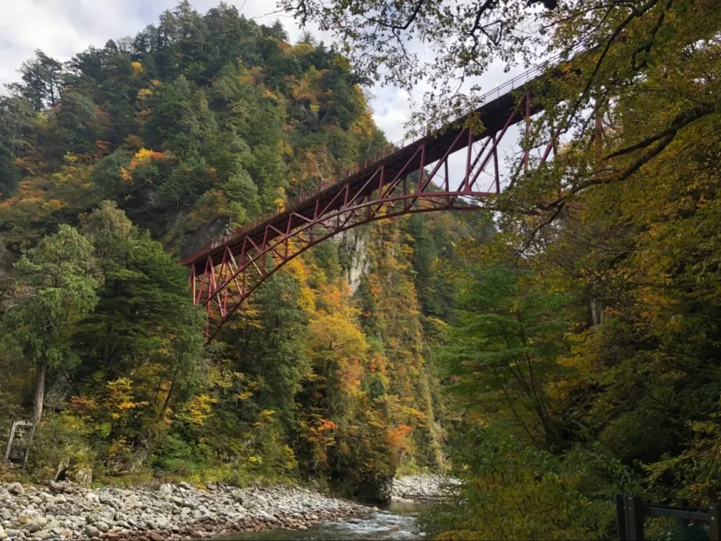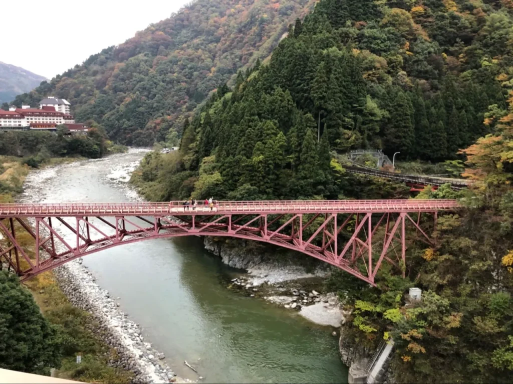 たとえば上記の奥鐘橋は、欅平駅から歩いて約5分のところにある朱色の橋。高さは約34mもあるため、奥鐘橋からの壮大な絶景を堪能できます。