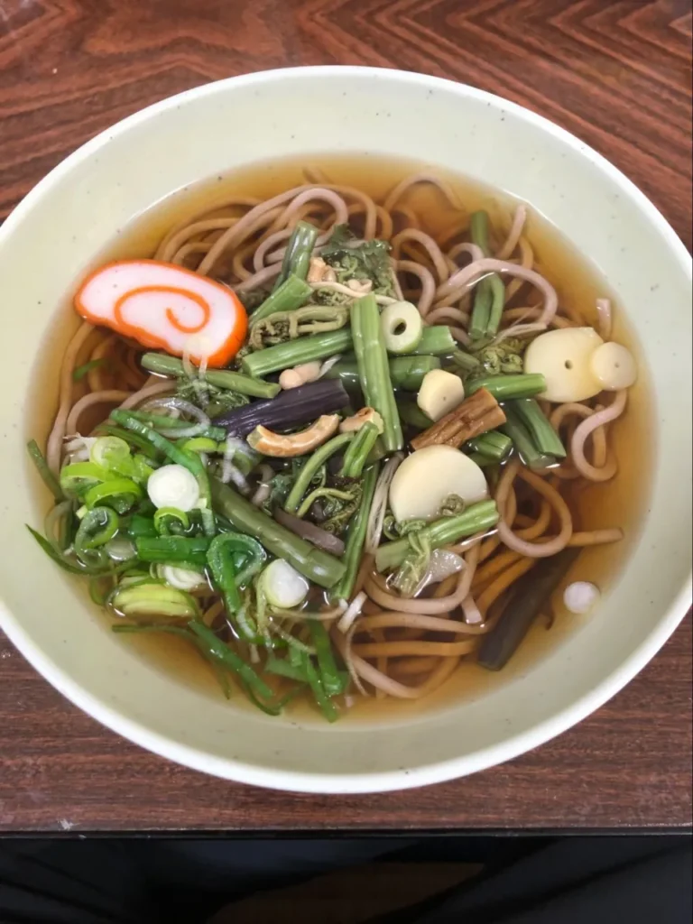 猿飛山荘でいただける山菜そばも逸品で、旨味が染み込んだ、シャキシャキ食感の山菜がハイキング後の体に活力をあたえてくれます。