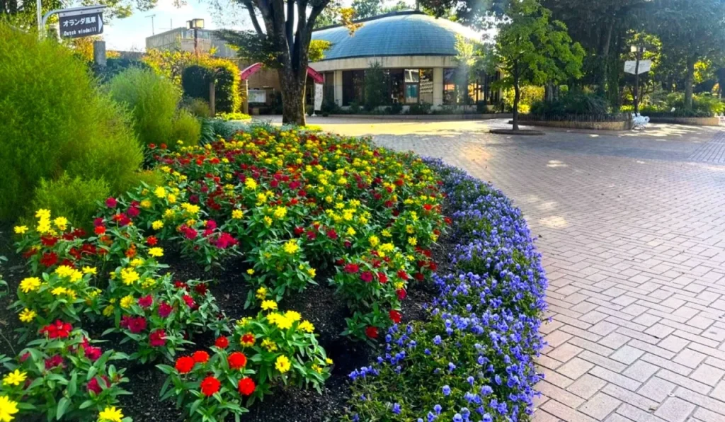 オランダ風車は1988年、「鶴舞公園(つるまいこうえん)」の要として「フラワープラザ」が会館したのを記念に設立されました。