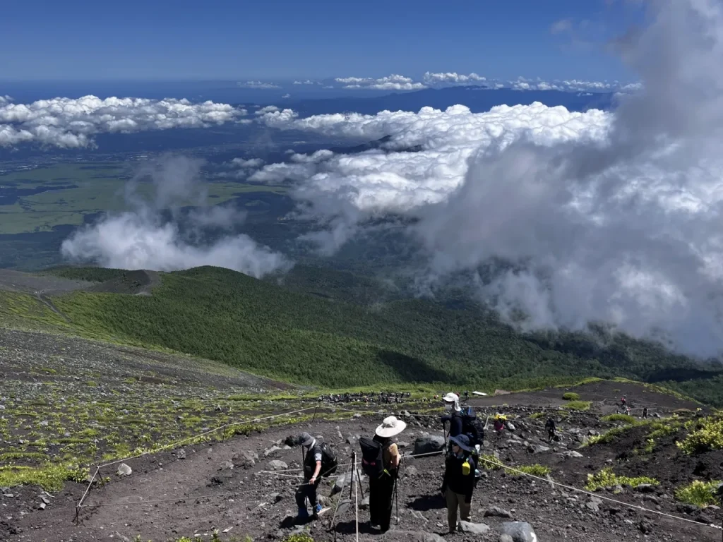富士宮口から登山スタート。眼下に駿河湾の海原を望みながら、9合目の万年雪山荘までの山歩きを堪能しましょう。