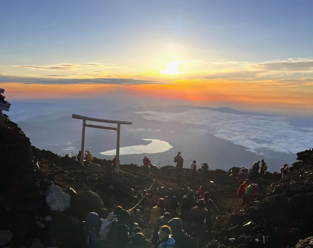 ご来光に合わせて、多くの登山者が夜明け前に山頂をめざすため、山頂手前で渋滞が発生し、日の出までに間に合わないこともあります。
