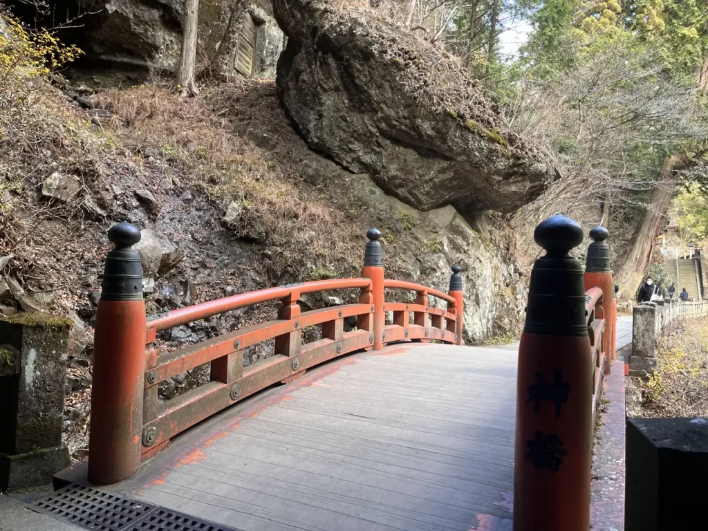 参道を歩いていくと、境内に点在する巨石や奇岩が橋や建物などの人工物と見事に調和している光景に驚かされます。