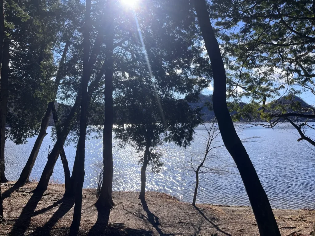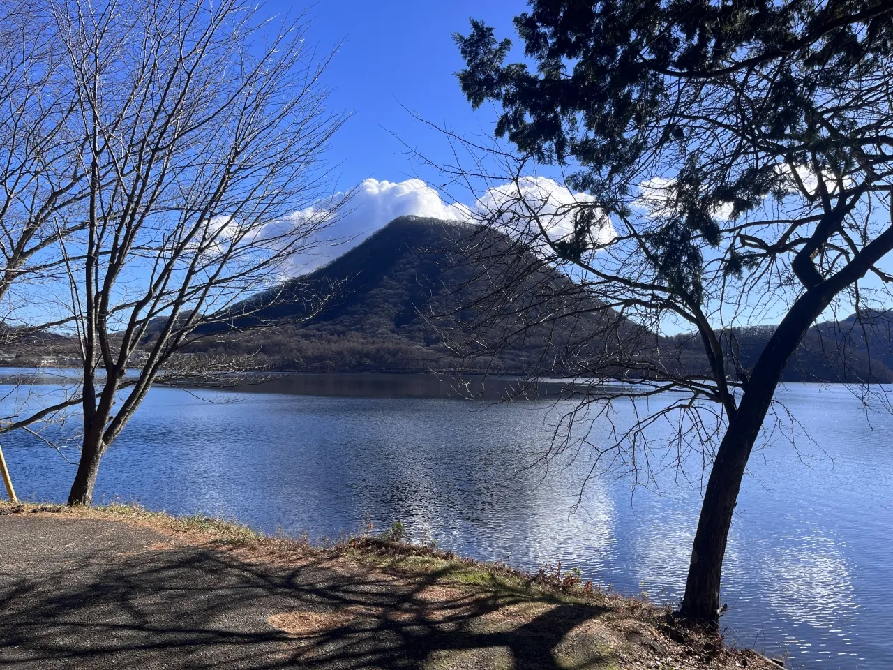 榛名湖周辺には複数の駐車場がありますが、今回は西岸にある「榛名湖ポケットパーク」を利用します。車を停めたら湖畔の遊歩道へと下り、右手に榛名富士を望みながら北へすすみましょう。