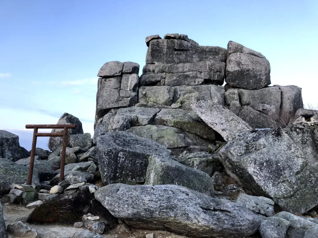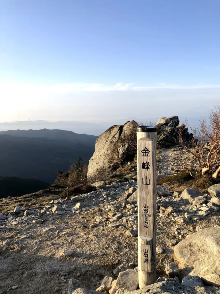 金峰山は山梨県甲府市と長野県川上村にまたがる標高2,599mの山です。山頂に五丈岩(ごじょういわ)と呼ばれる巨石が鎮座しているのが特徴で、古くより信仰の対象とされてきました。