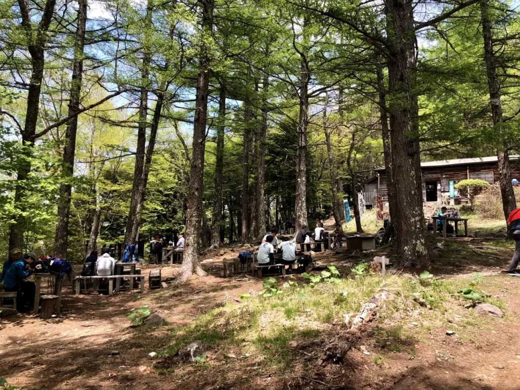 登山口から富士見平小屋まで約1時間で到着するため、重い荷物を背負ったまま長時間歩く必要はありません。