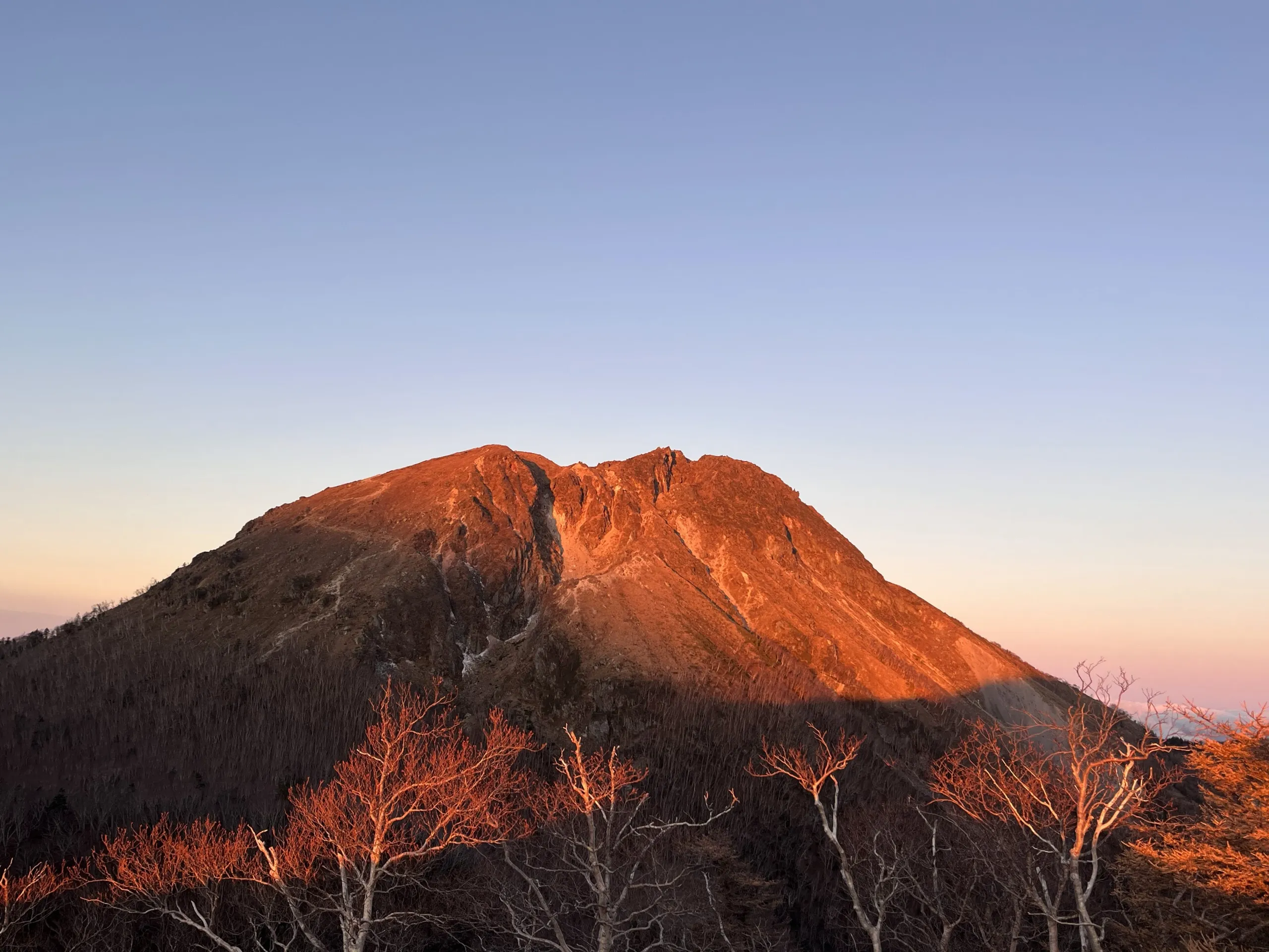 日光の外輪山の一角を成す前白根は絶好のビューポイントです。当日は好天に恵まれ、東の空から登る朝日が白根山の頂きを赤く染め上げる光景が見られました。