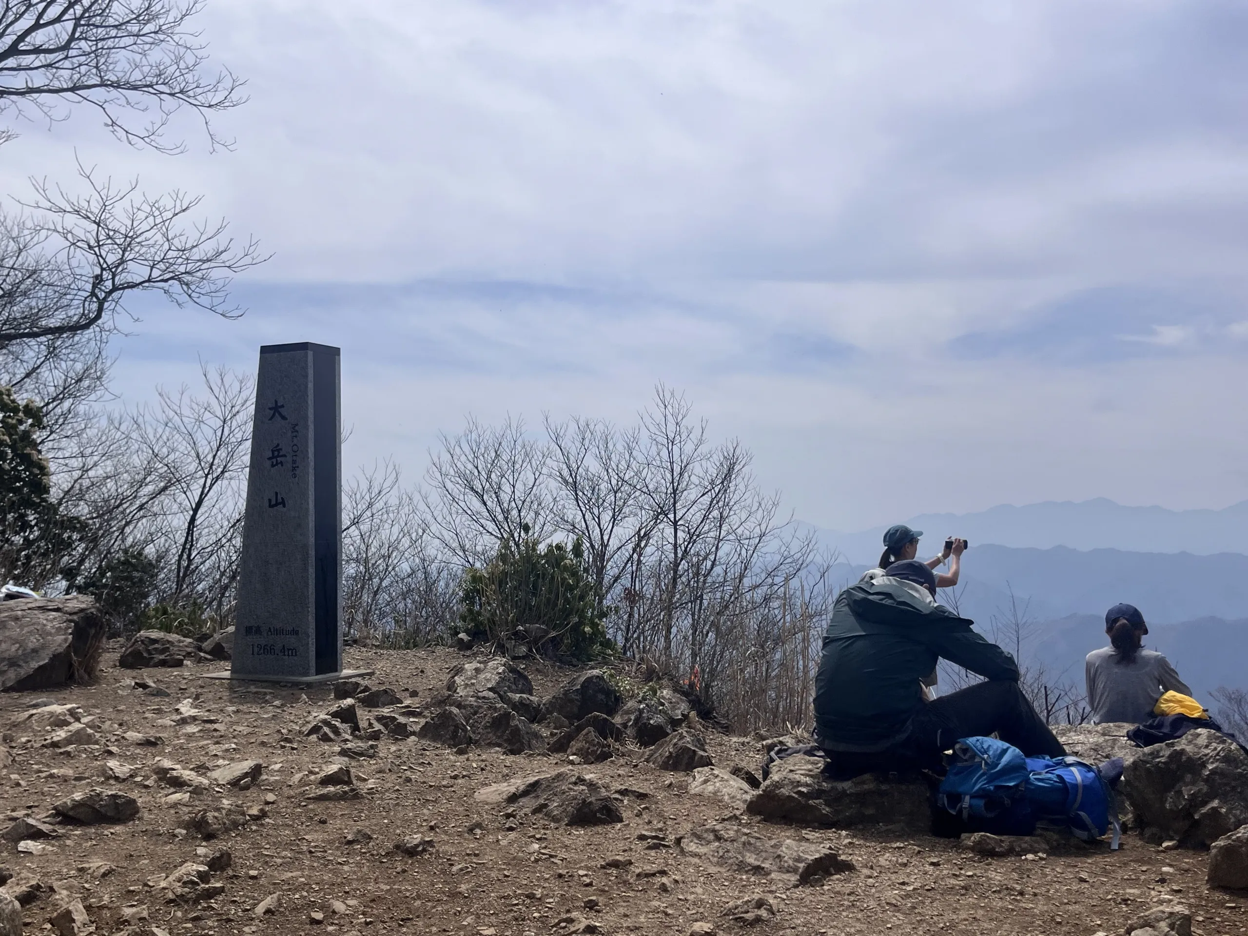 大岳神社を過ぎ、最後の急な岩場を登ると、標高1,266mの大岳山山頂に到着。