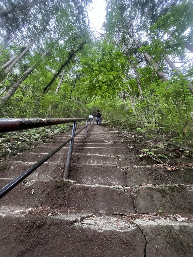 愛宕神社の参道でもある石段は約45度の急傾斜で、疲れた足で降りるのは怖く感じてしまうかもしれません。慎重に石段を下りきれば、ゴールである奥多摩登山口はすぐそこです。