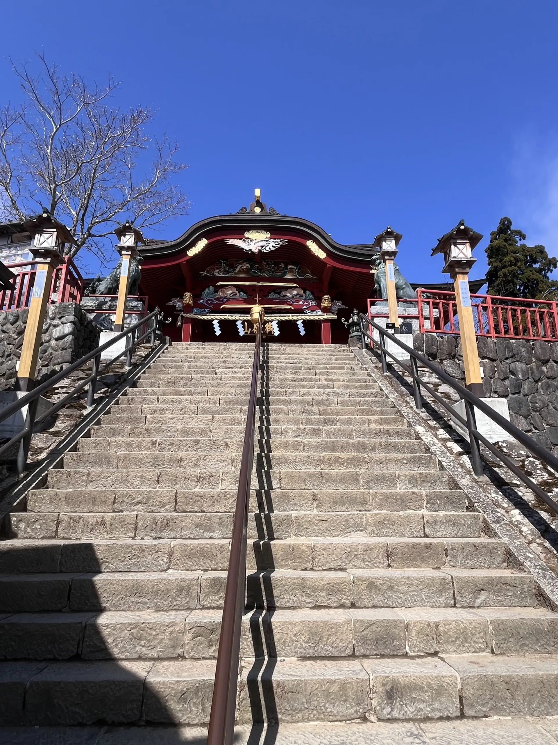 伝統的な住居の集落を通り、15分ほど歩くと現れるのは、武蔵御嶽神社の入口である大きな山門。本殿まではここから約330段の石段を登ります。
