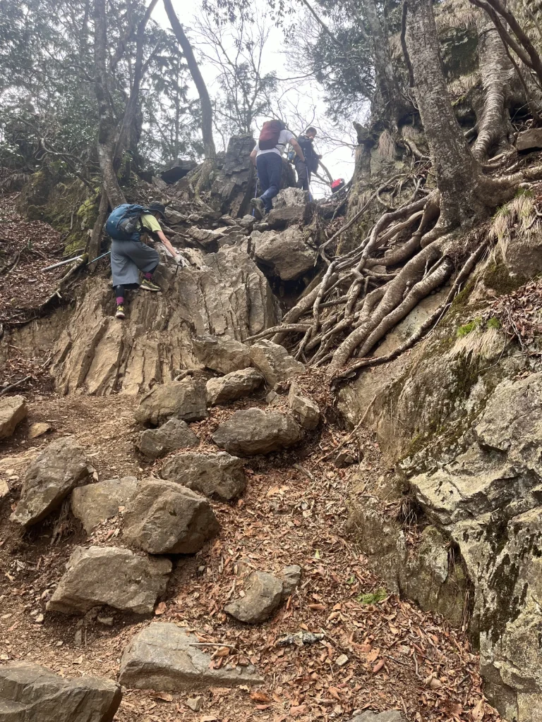 ここから先は、岩場や鎖場の連続する本格的な登山ルート。危険な箇所はそれほど多くありませんが、慎重に登っていきましょう。