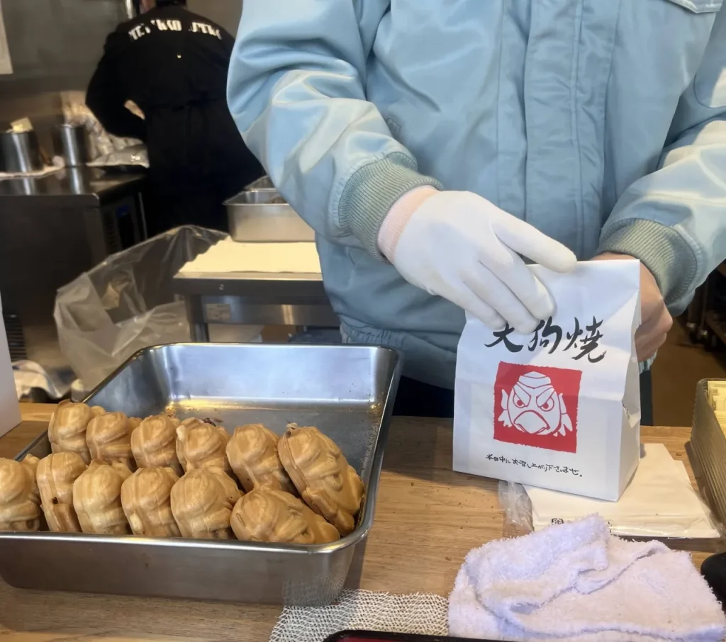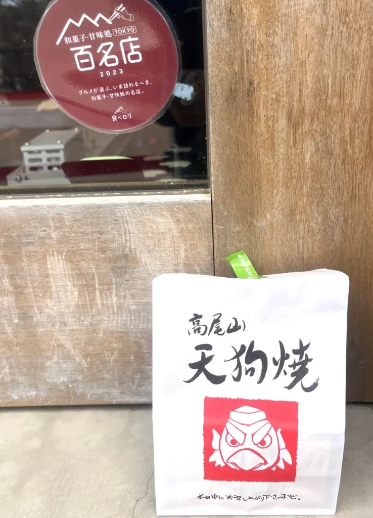 ケーブルカー高尾山駅前の売店で販売する「天狗焼」は食べ歩きにおすすめの人気商品。