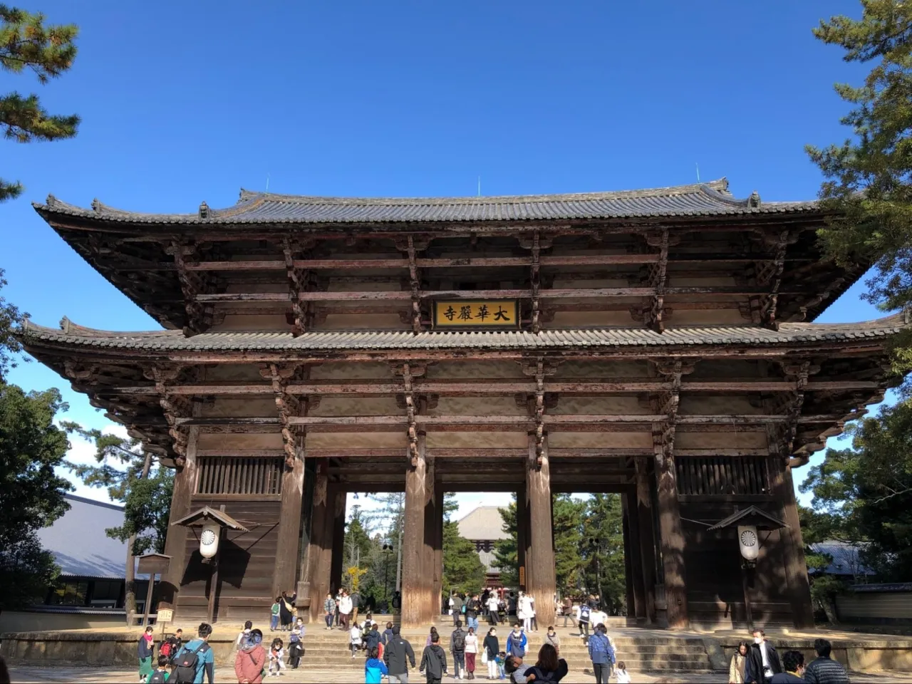 まずは世界遺産、東大寺の正門、南大門です。どっしりとしたその門の雰囲気は、この先どんな建造物が待っているのだろうとワクワクさせてくれます。