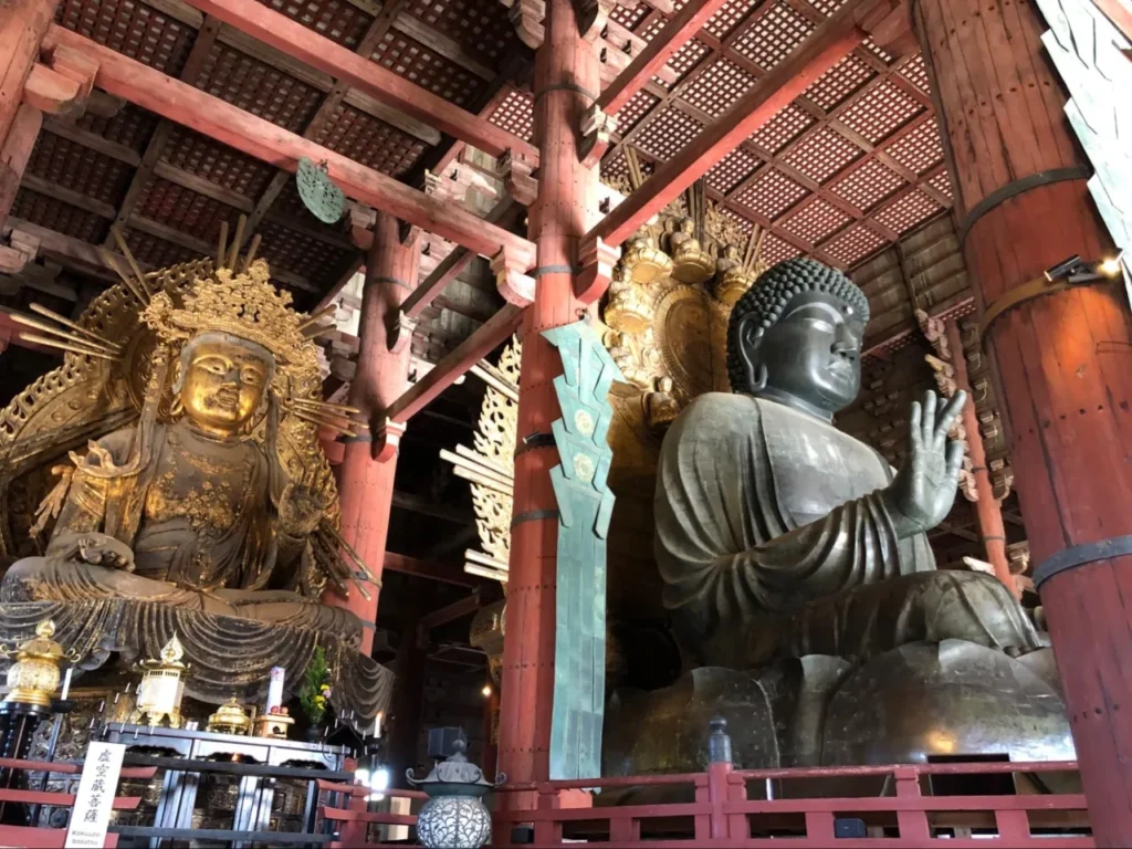 たとえば上記の写真は、奈良公園内でも有名な東大寺。あなたも修学旅行で訪れたことがあるかもしれません。東大寺の中には、シンボルである盧舎那仏像(るしゃなぶつぞう)が座しており、大迫力の空間に目を奪われます。