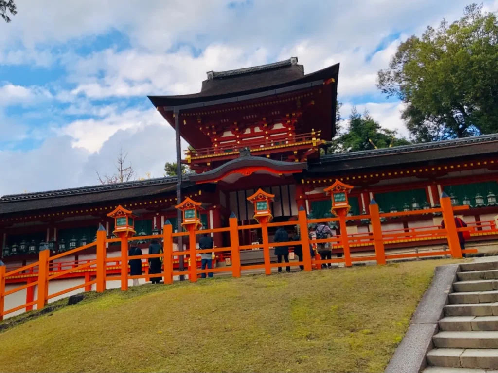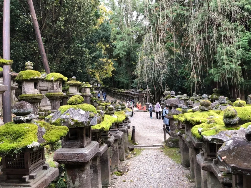 こちらは東大寺から少し歩いたところにある春日大社(かすがたいしゃ)です。春日大社も東大寺と同様、世界遺産に登録されており、全国にある春日大社の総本山でもあります。