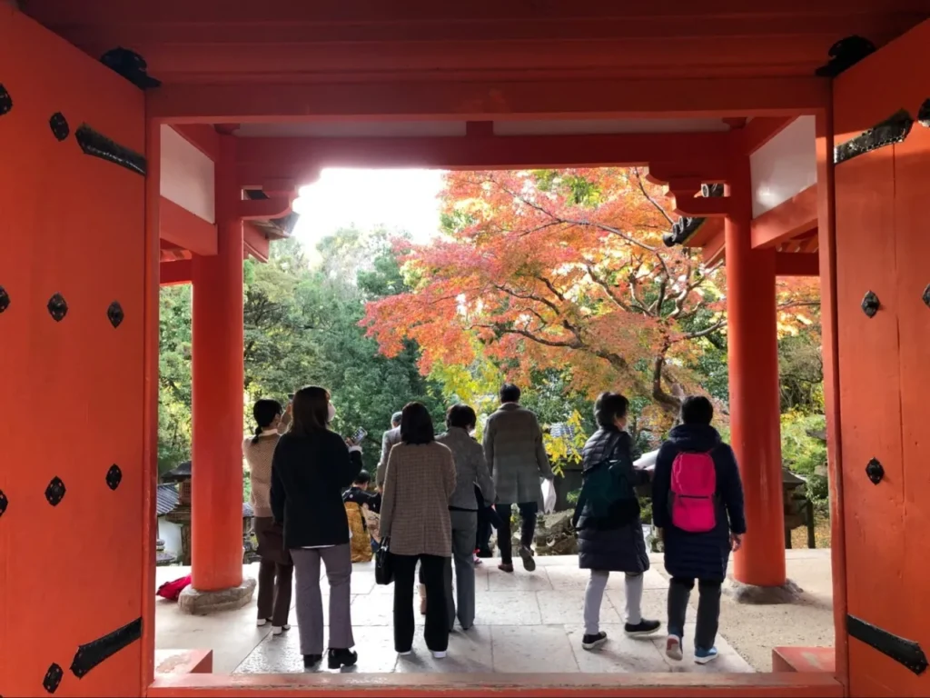 こちらは春日大社出口の様子です。出口から見える紅葉は、まるで絵画のような姿で出迎えてくれます。