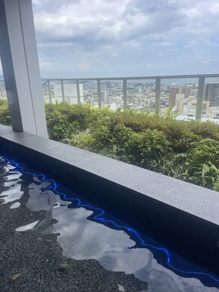 ミナカ小田原のタワー棟14階の展望足湯庭園では、小田原の街並みや相模湾の眺望を楽しみながら足湯が楽しめます。